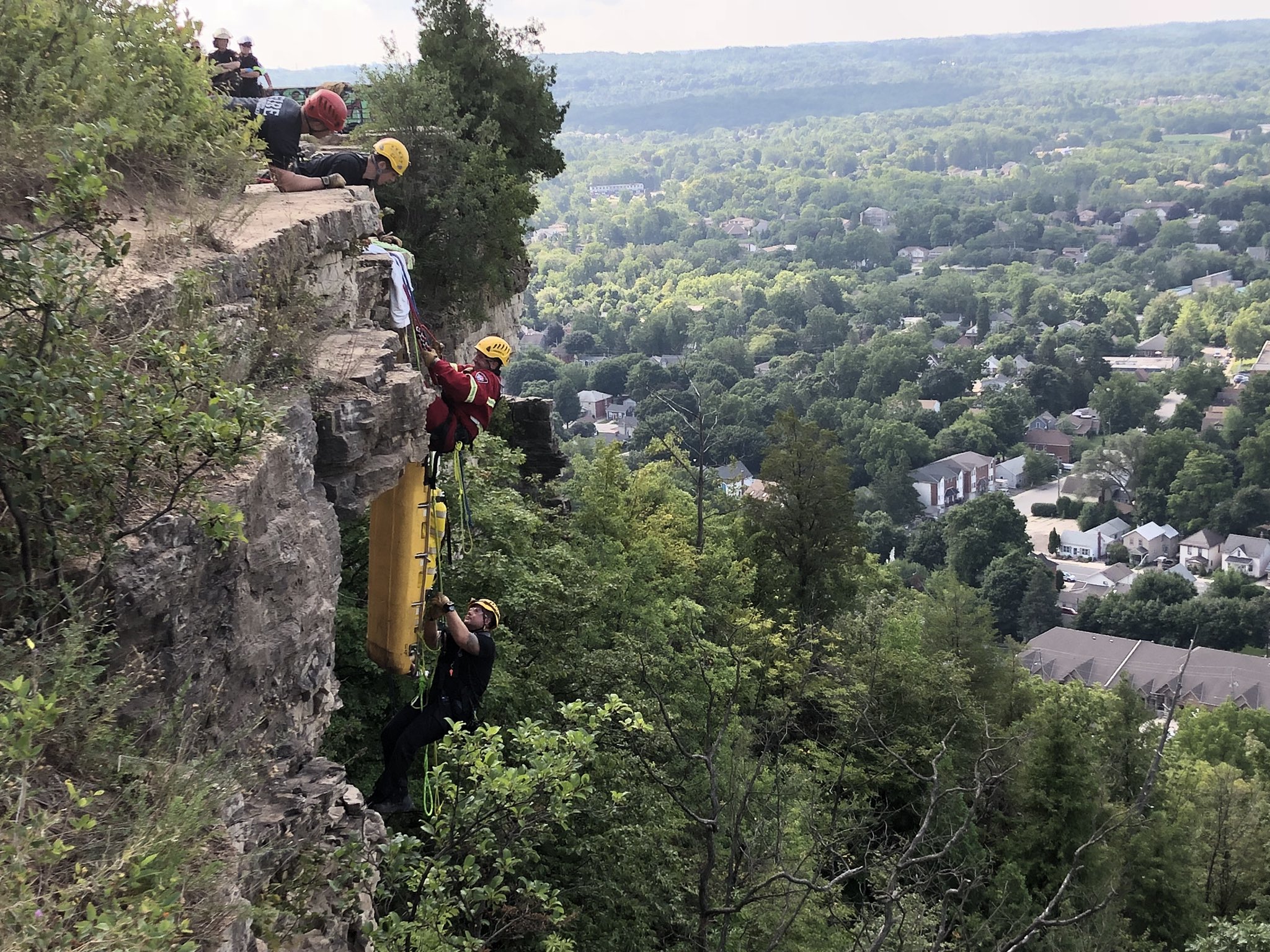 “Firefighters were able to locate the first patient from below by walking up the trails. The second patient was located by a rope rescue team from the top,” said Deputy Fire Chief John Verbeek.