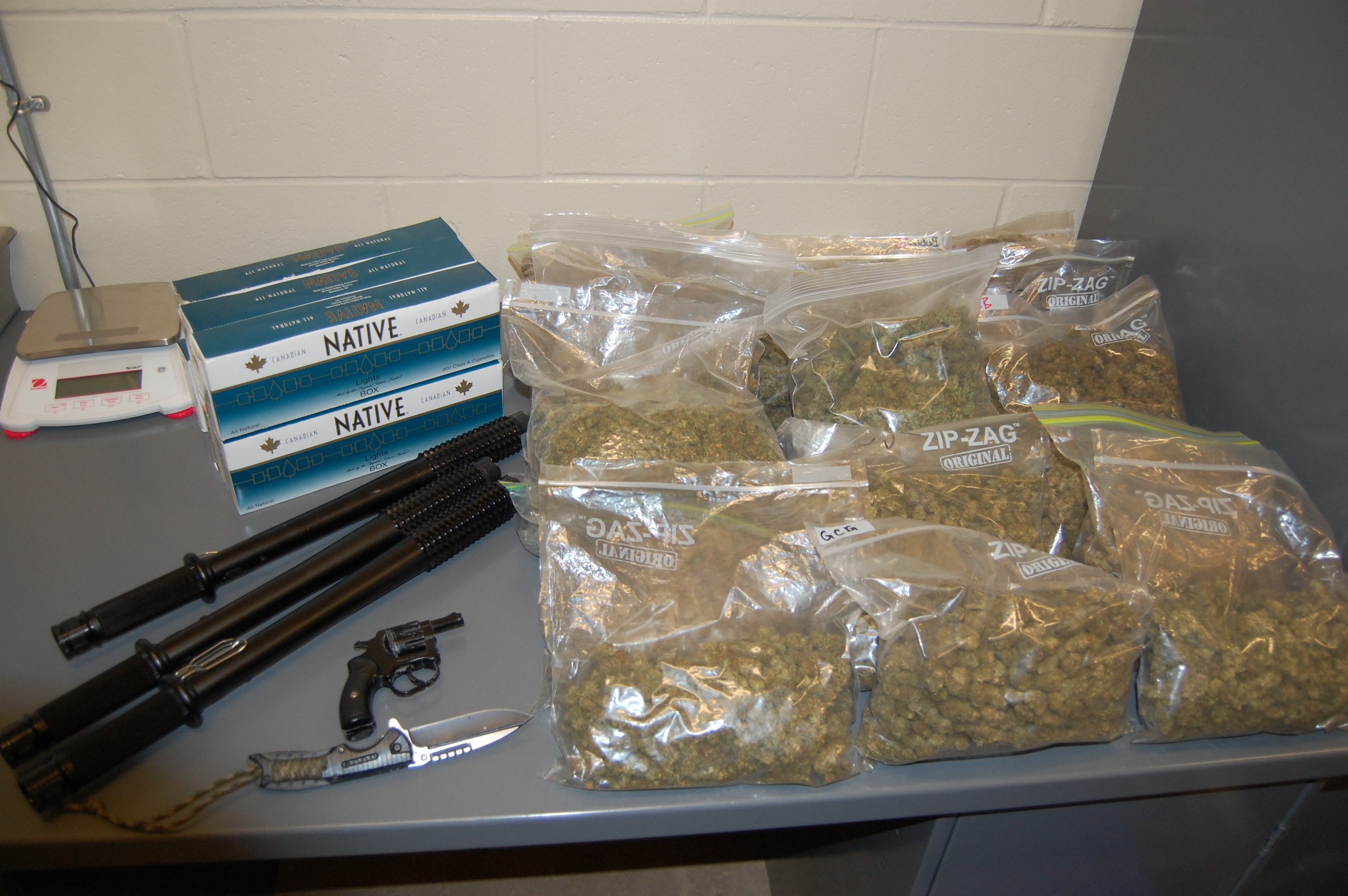 According to the RCMP, the vehicle was stopped for speeding approximately 10 kilometres east of Revelstoke, at 6:30 p.m., on the Trans-Canada Highway. Police said upon further investigation, they found and seized 10 pounds of cannabis, three prohibited weapons, a replica pistol, contraband tobacco and an undisclosed amount of Canadian money.