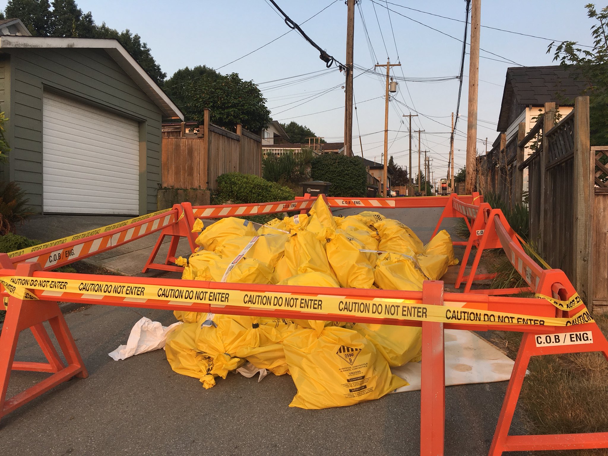 Residents of a north Burnaby neighbourhood are outraged after bags filled with asbestos were dumped in an alley recently.