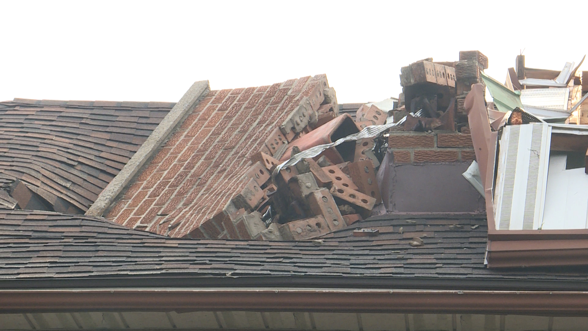 The Fabbros had a portion of their roof torn off, knocking over their chimney, which then fell on the the roof above the garage, caving it in.
