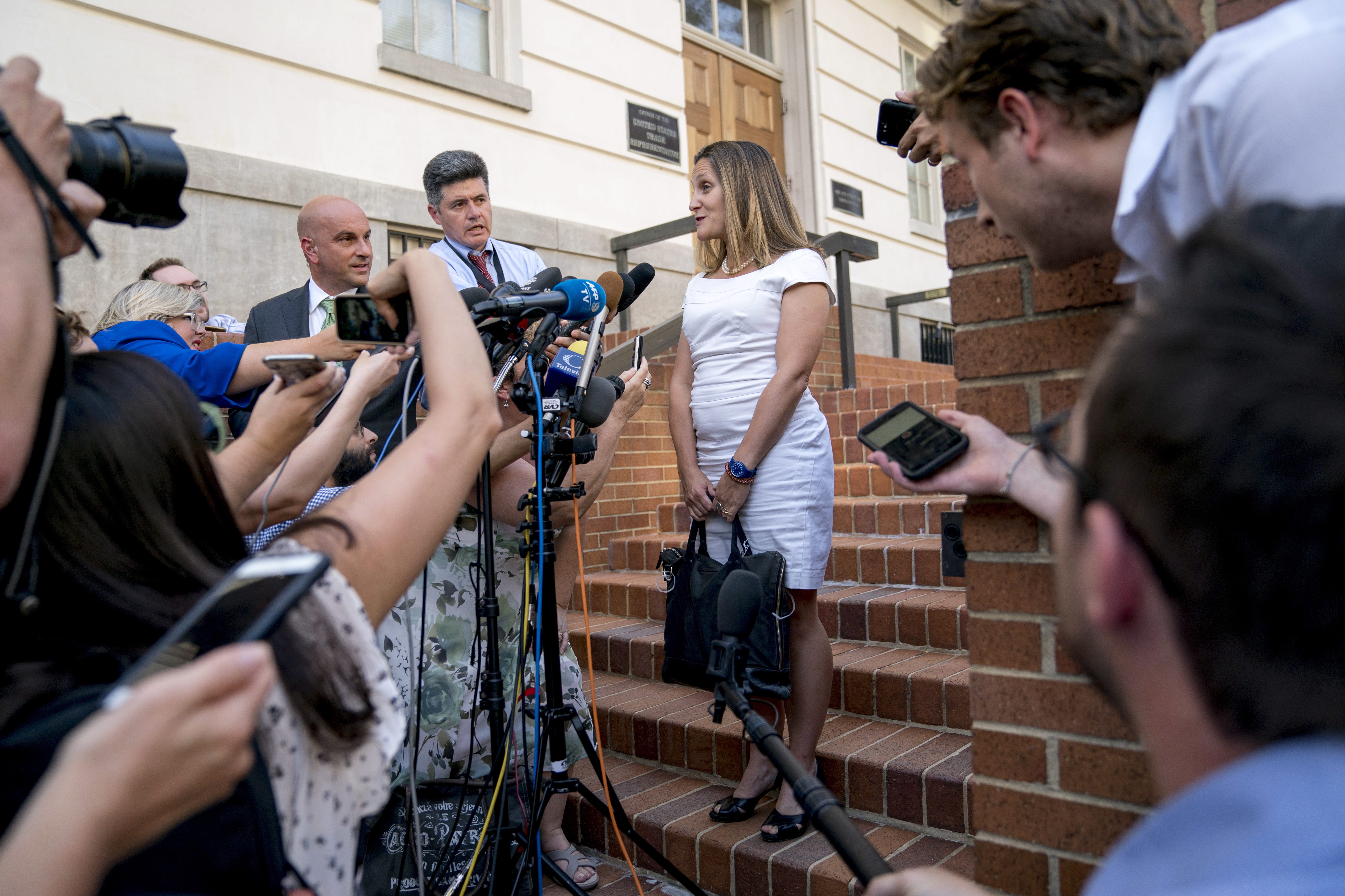 Canadian Foreign Affairs Minister Chrystia Freeland hurried to Washington to try to repair the damage, meeting Tuesday with U.S. Trade Rep. Robert Lighthizer.