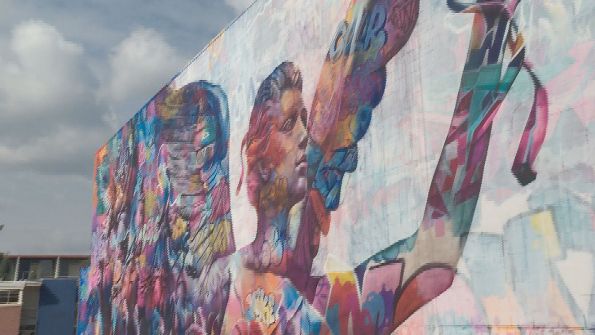 The mural stands four storeys tall and 36 metres wide.