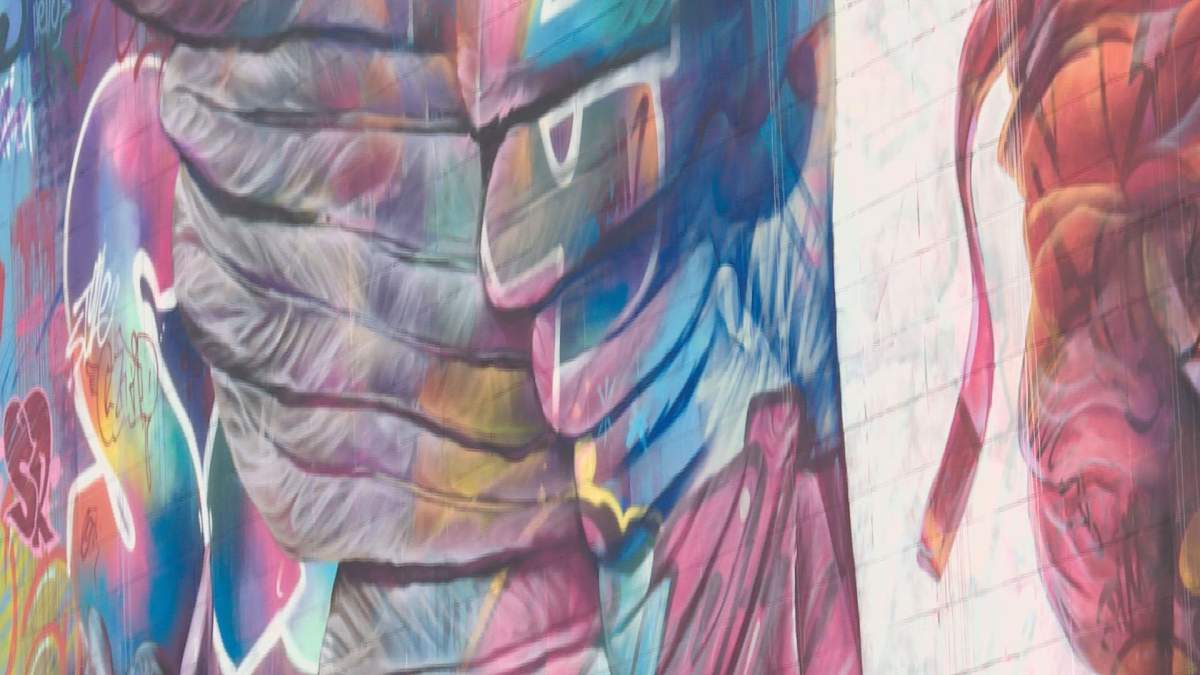 What was once a large blank wall in downtown Edmonton is now a colourful work of art, thanks to Spanish street artist duo PichiAvo.