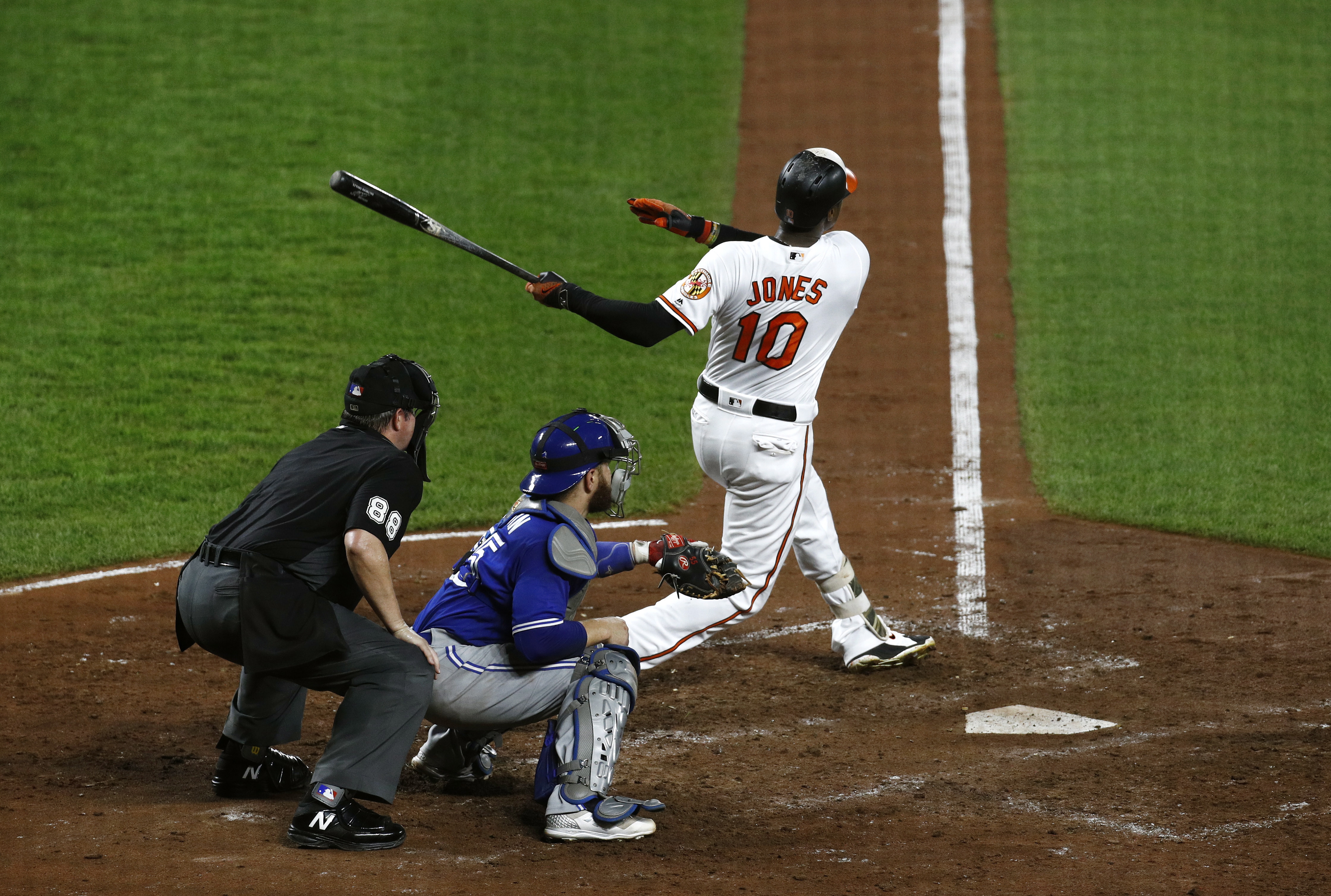 The Orioles overcame a four-run deficit and three Toronto homers to become the last team in the majors to reach 40 wins. Jones led the charge, giving Baltimore a 5-4 lead with a fifth-inning shot off rookie Ryan Borucki.
