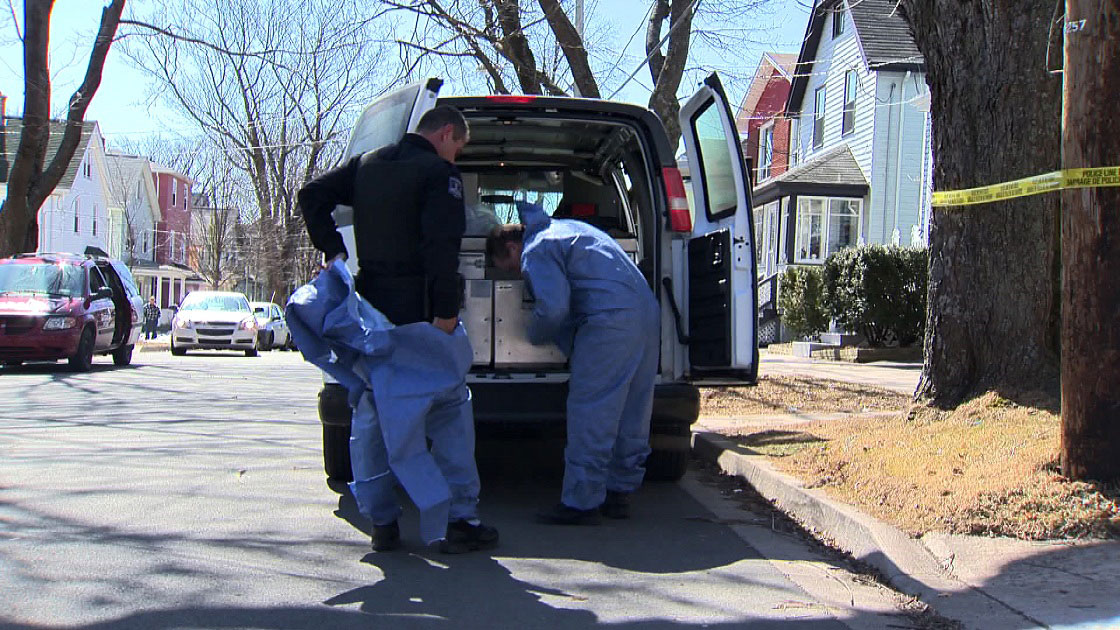 The Forensic Identification Unit showed up in two separate white vans around 2:30 p.m. They entered the house wearing sterile blue scrubs and foot coverings.
