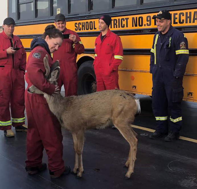 He then came up to her bus and stepped up when the firefighters were getting on. Giesbrecht said the deer followed the bus to the ferry and even rode over to the other side.