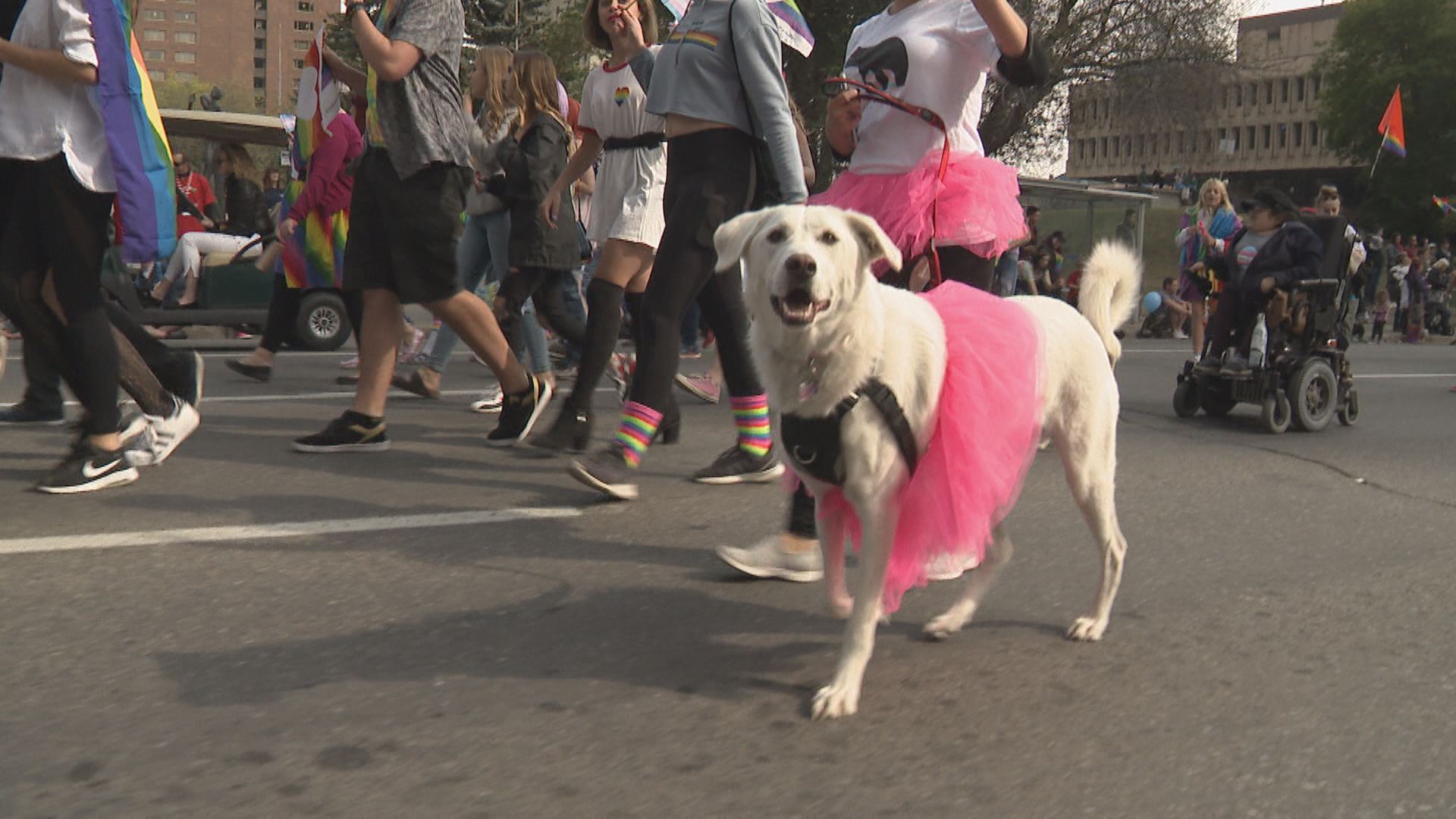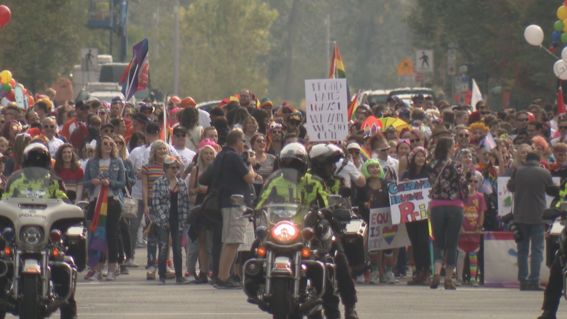 The family-friendly event celebrating the LGBTQ community kicked off at 11 a.m. as drag queens, business people, politicians and church representatives stopped traffic while walking down 6 Avenue S.W.