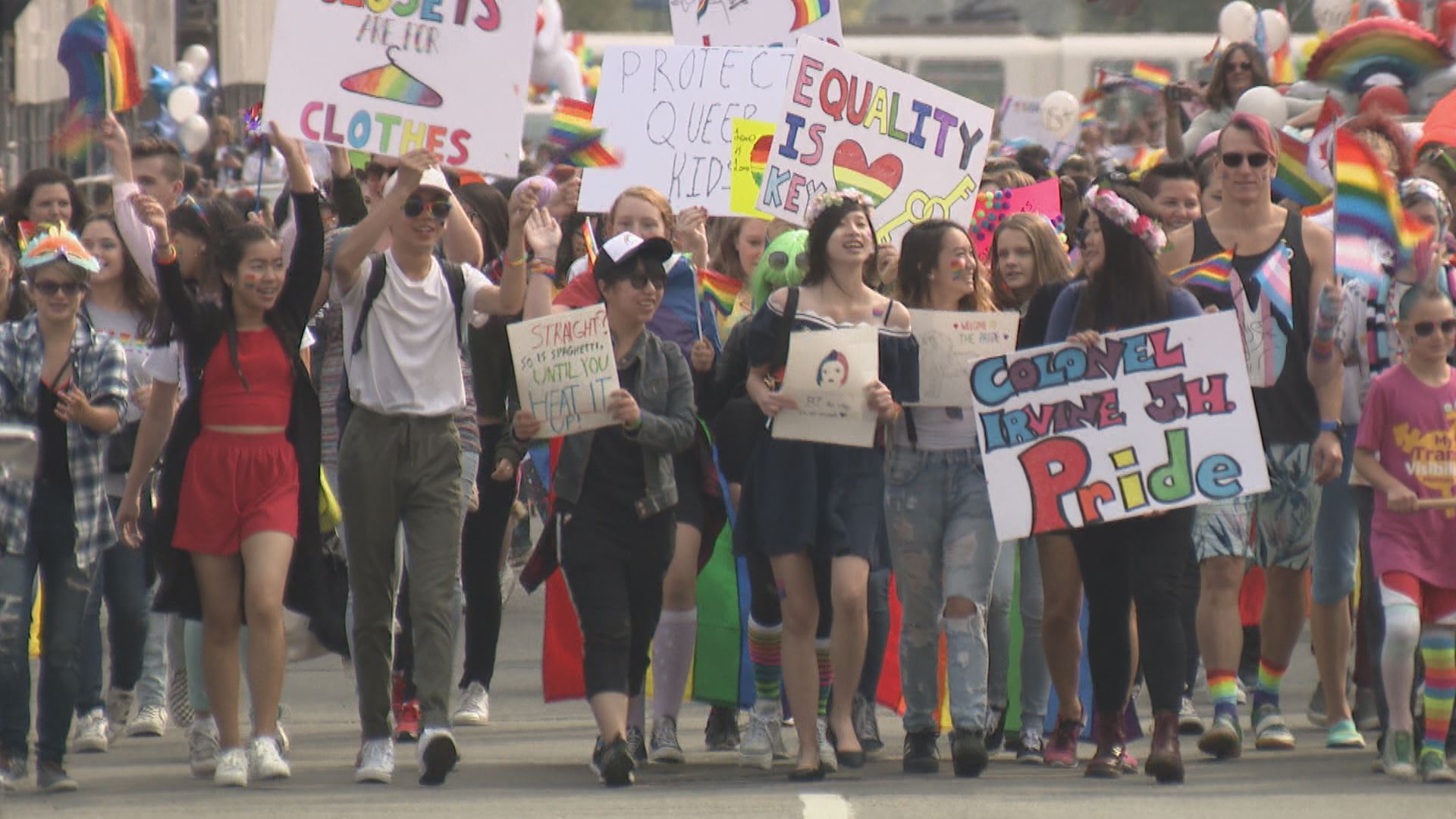 Members of gay-straight alliances (GSAs) led the parade through downtown.
