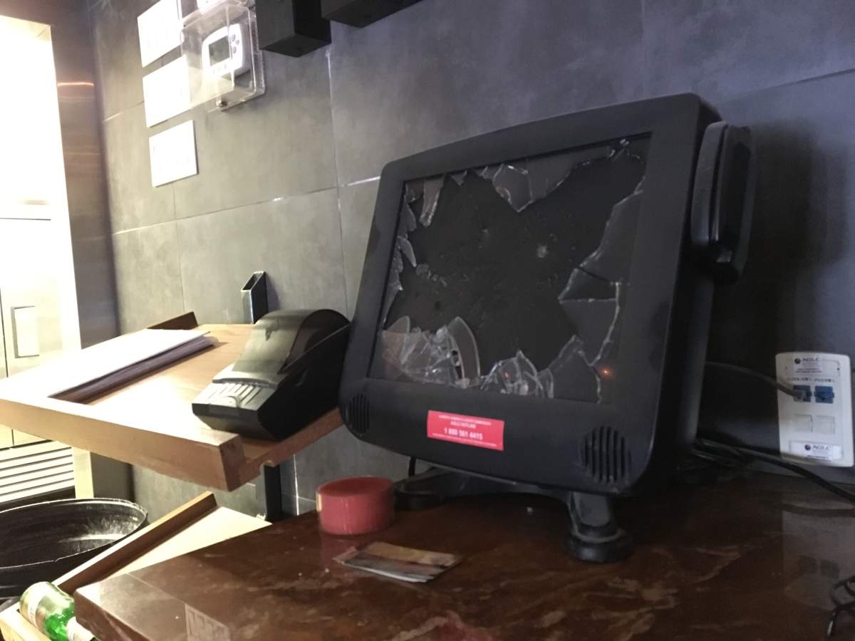 Sunday morning, the security camera captured the vandals smashing the windows. Once inside the building, the thieves filled bags with bottles of booze and cleared out the bar. The culprits — who appeared to be in their teens, according to police — opened up coolers and tossed beer bottles at televisions. They drove their fists and bar stools into the arcade games and screens of the VLTs.