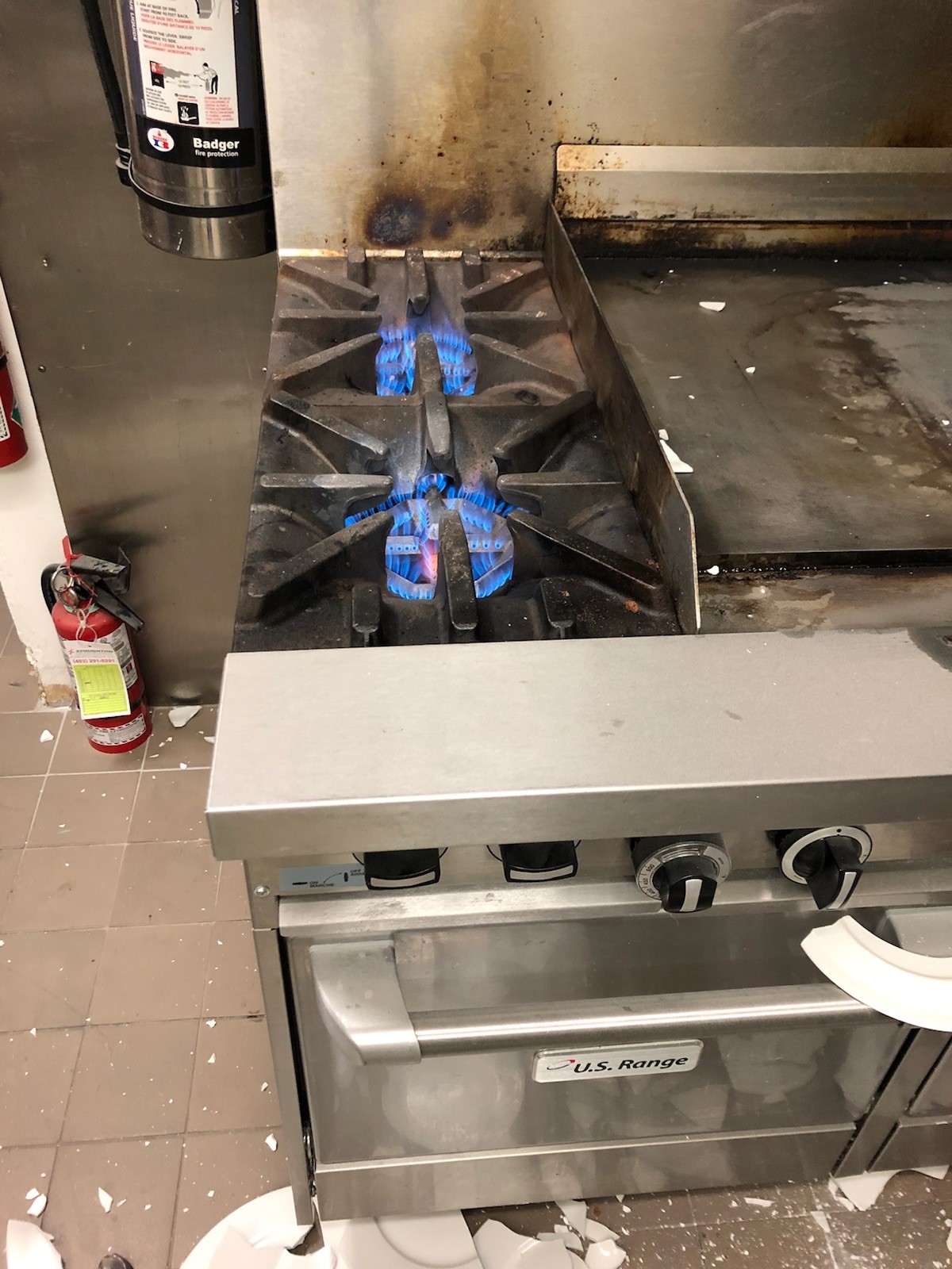 Before it was over, the group set off the fire extinguisher. It covered the place with a thick film of residue which will require professional cleaners to tackle.