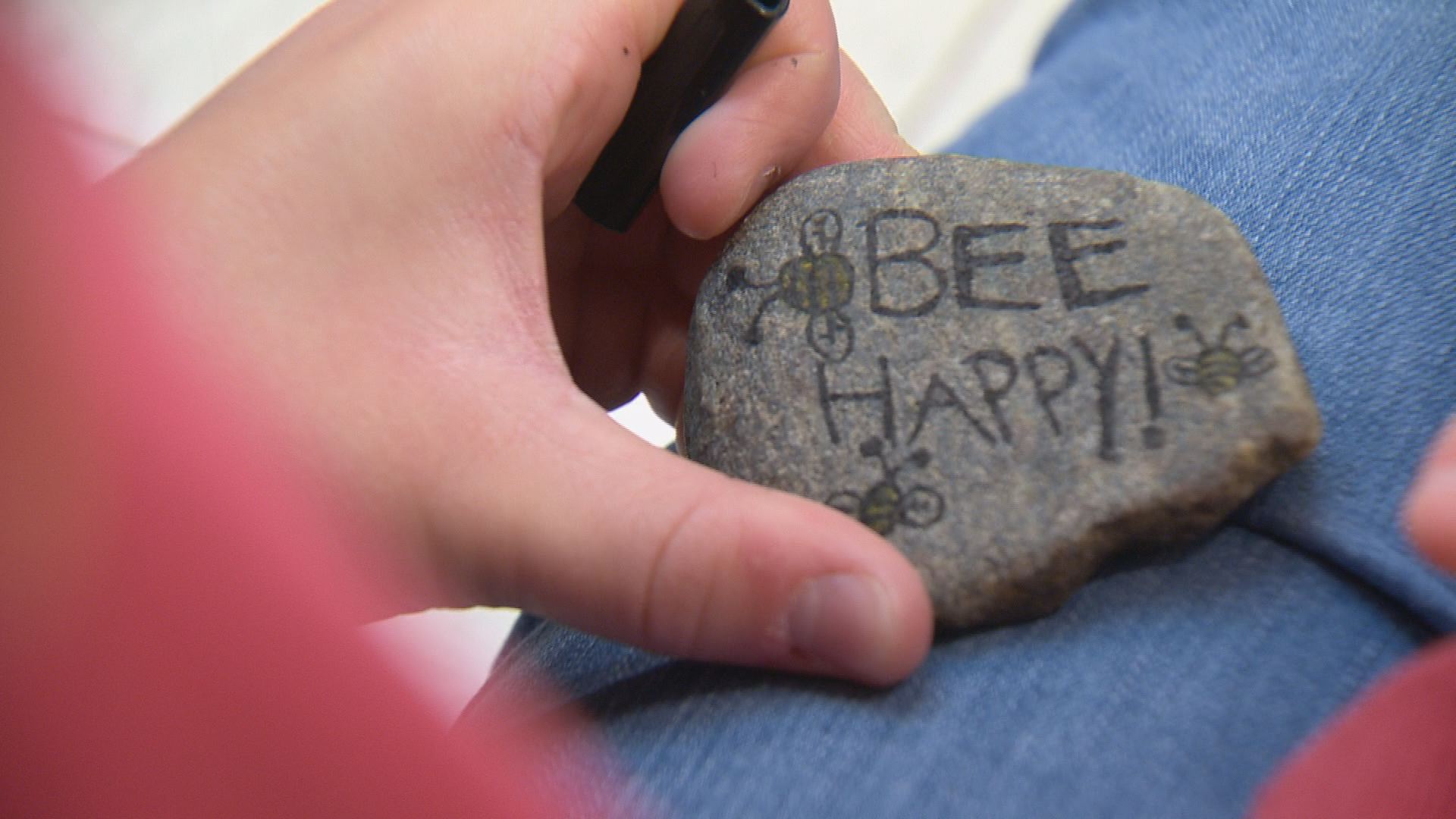 The students each brought a rock to school that they decorated with words of kindness, a simple concept that all started with one woman’s growing rock collection and a love of art.