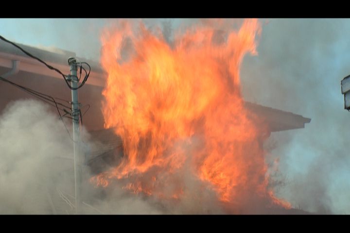 The fire was threatening to spread to a neighbouring home, prompting a resident next door to cool down his house with a hose until firefighters arrived.