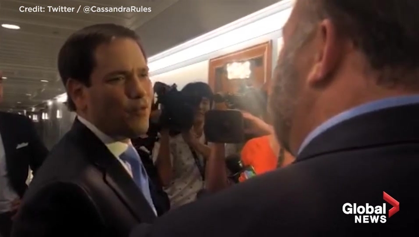 A routine press scrum nearly turned into political theatre of a different kind after U.S. Senator Marco Rubio (R-FL) was confronted by controversial Inforwars host Alex Jones Wednesday.