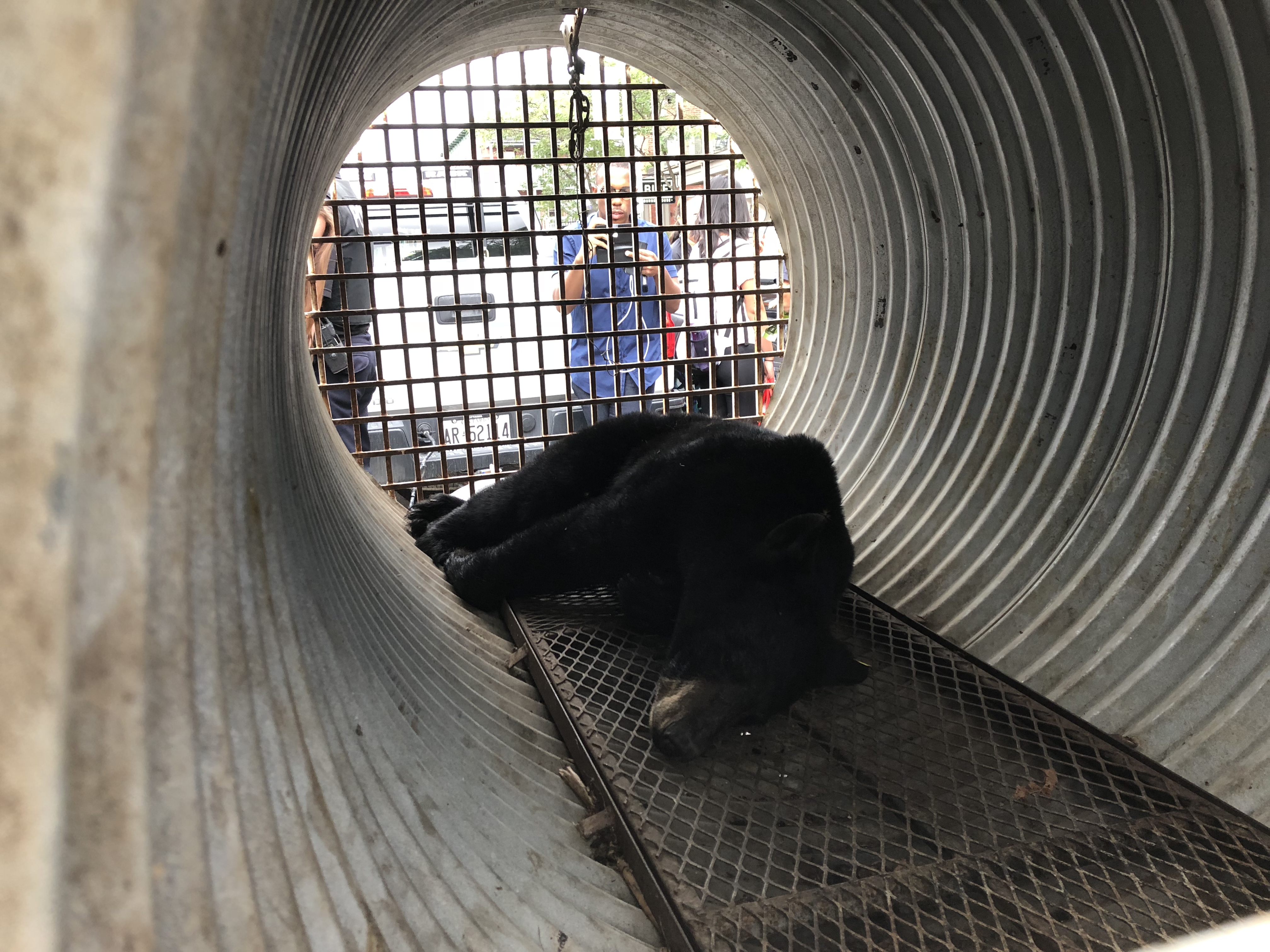 There appeared to be a small struggle as police and conservation officers guided the animal towards the back of the cage. Wasson said the movement seemed to have woken the bear “very briefly” and he stirred, which caused the officers to react.