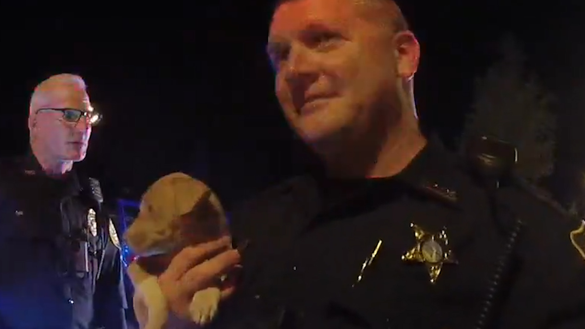 Later, police are seen holding the puppy which “spent some time cuddling with deputies.” She was then given to the Marion County Animal Control.