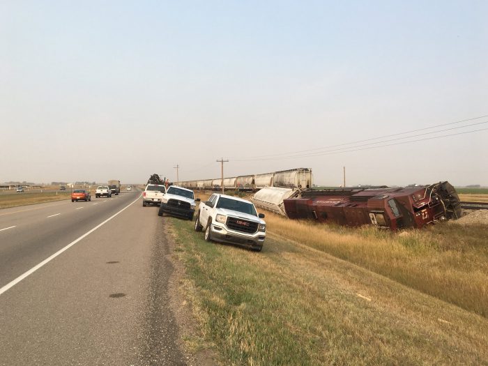 In late July, a train derailed south of Lethbridge near Highway 4, spilling canola.