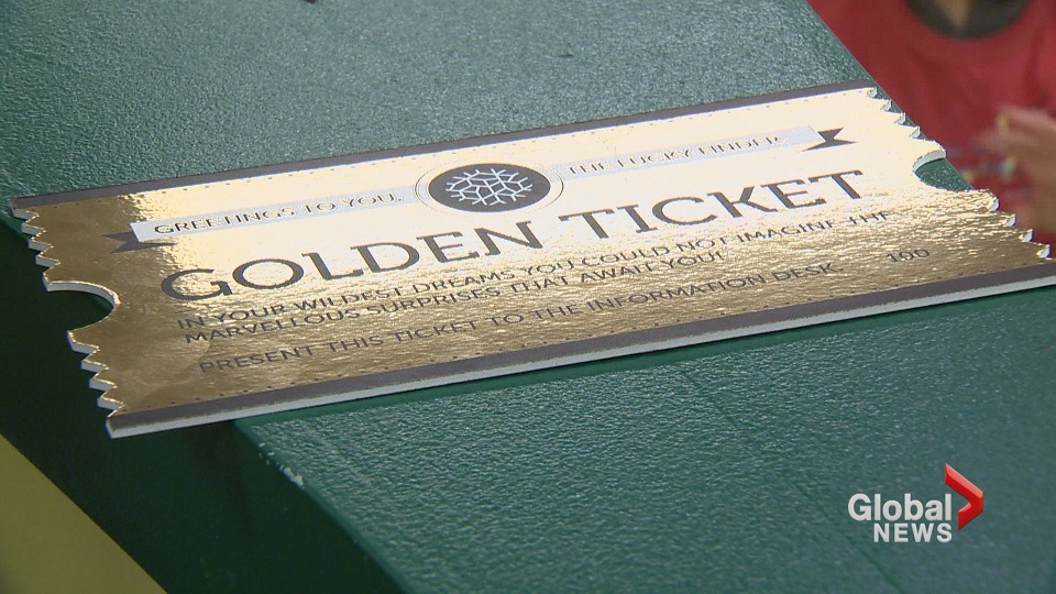 The tickets in the story were hidden in the wrapping of Wonka’s chocolate bars, while in the library’s version, they’re stashed somewhere in each of the 20 branches around Calgary.