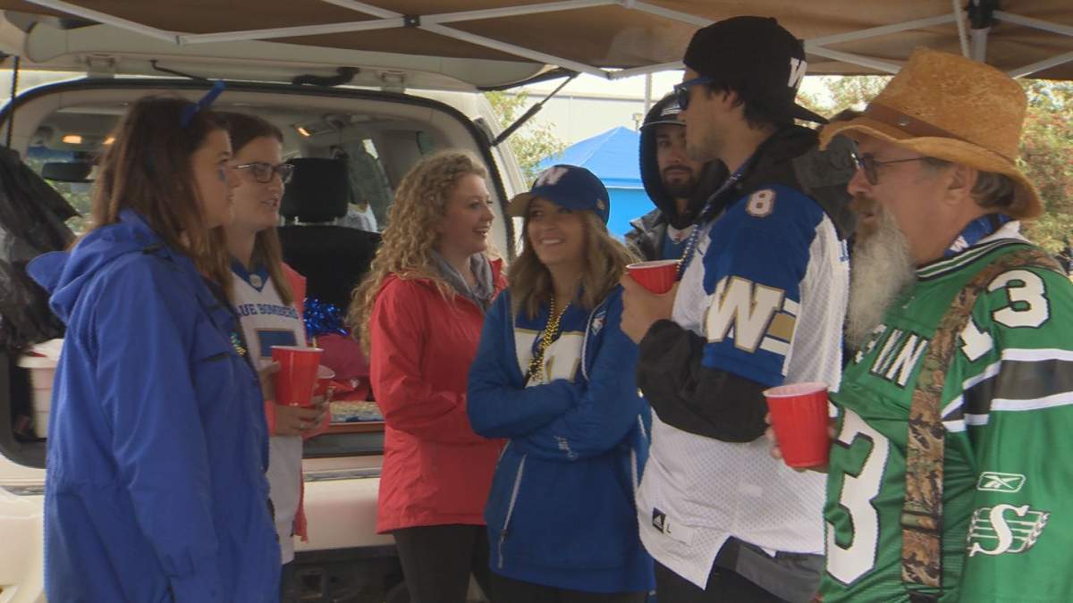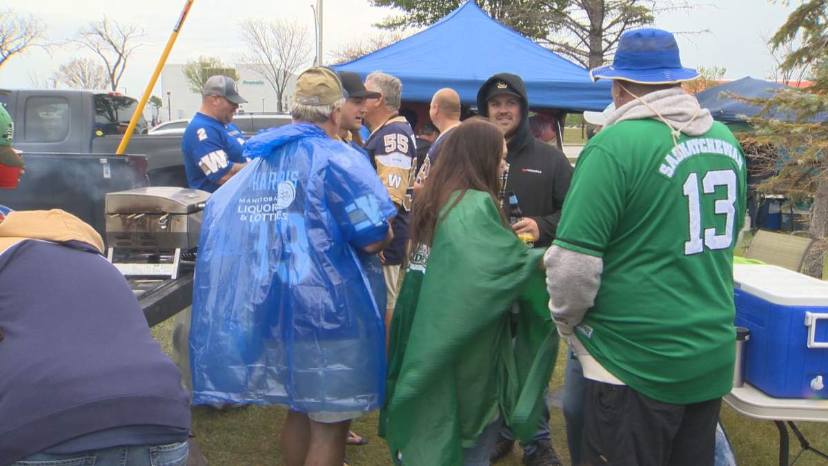 The grey, gloomy skies over Winnipeg did not stop passionate football fans of the Blue Bombers and the Saskatchewan Roughriders from celebrating the game they love.
