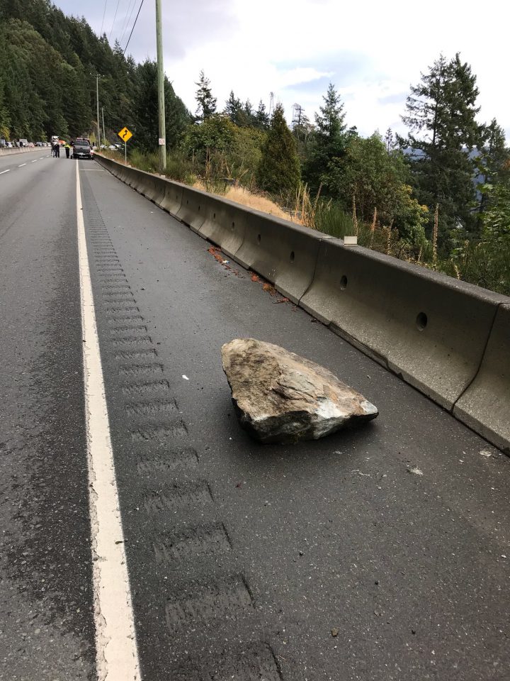 The Malahat Highway was completely shut down Monday morning at Tunnel Hill due to a rock slide.