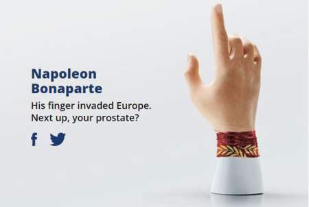 Part of a public awareness campaign by Prostate Cancer Canada. Screenshot, Famousfingers.ca