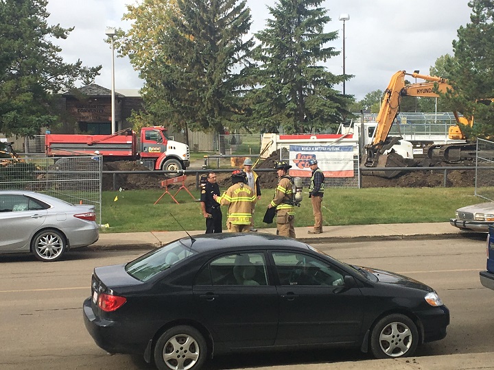 Edmonton Fire Rescue Services said crews, including a HAZMAT team, responded at 9:16 a.m for a ruptured gas line.
