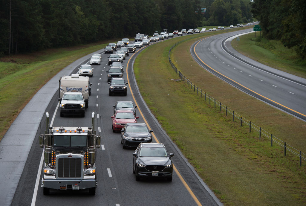 A line of heavy traffic lumbered away from the port city of Wilmington, N.C. and towards inland Raleigh, with Interstate 40 becoming gridlocked in some places due to fender-benders.