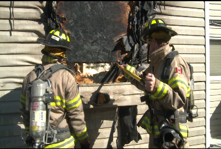 Flames were crawling up a garage wall when Kelowna firefighters were called to the residence in the 2100 block of Woodlawn Street – off Richter.