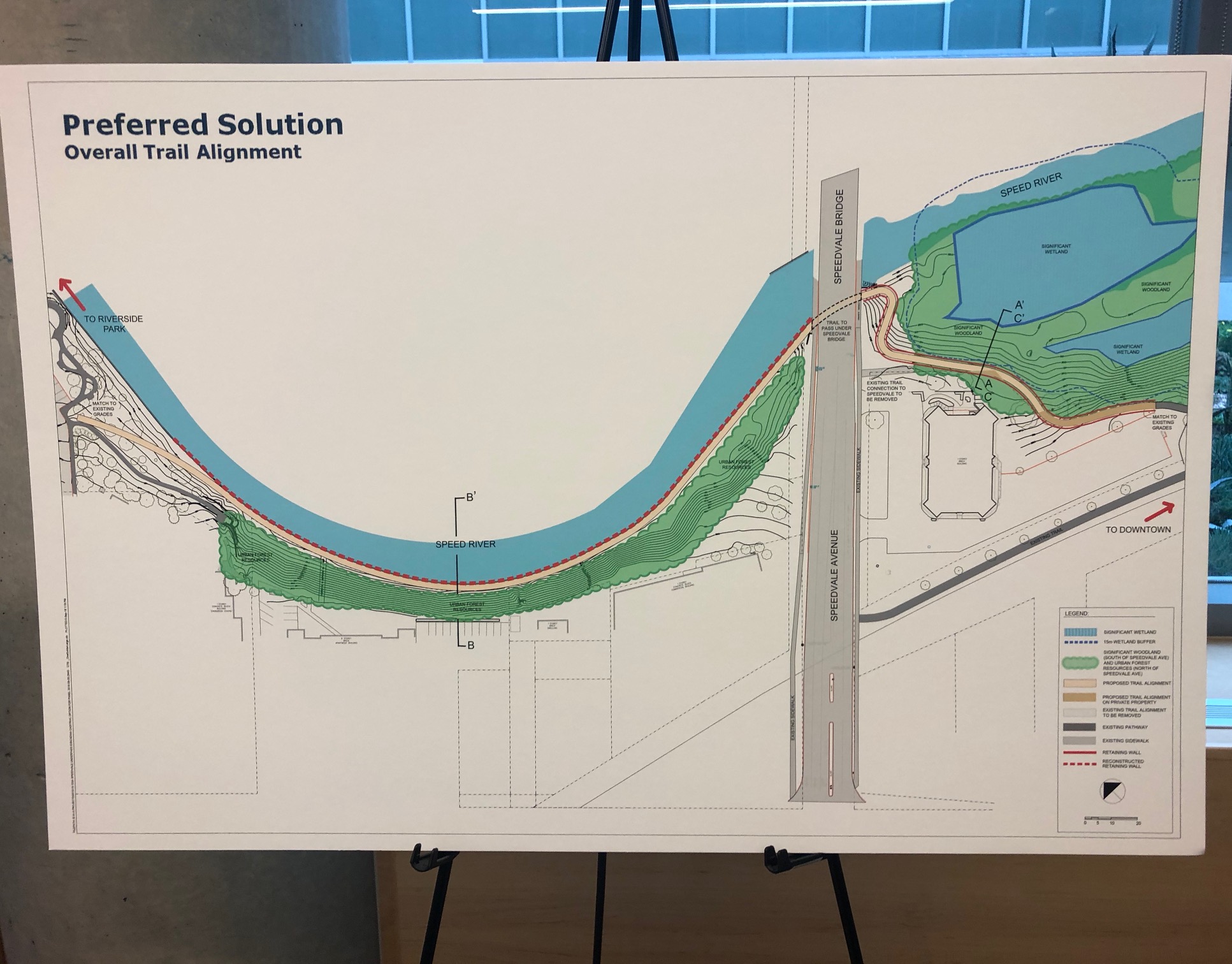 About 50 residents who showed up for the meeting had the opportunity to ask if other options had been considered, such as a boardwalk or going up the other side of the river.