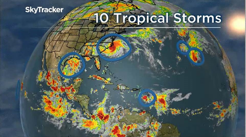 Just south, near Texas and Mexico, is a system with no name, but that nevertheless packs a 30 per cent chance of turning into a cyclone within 48 hours.