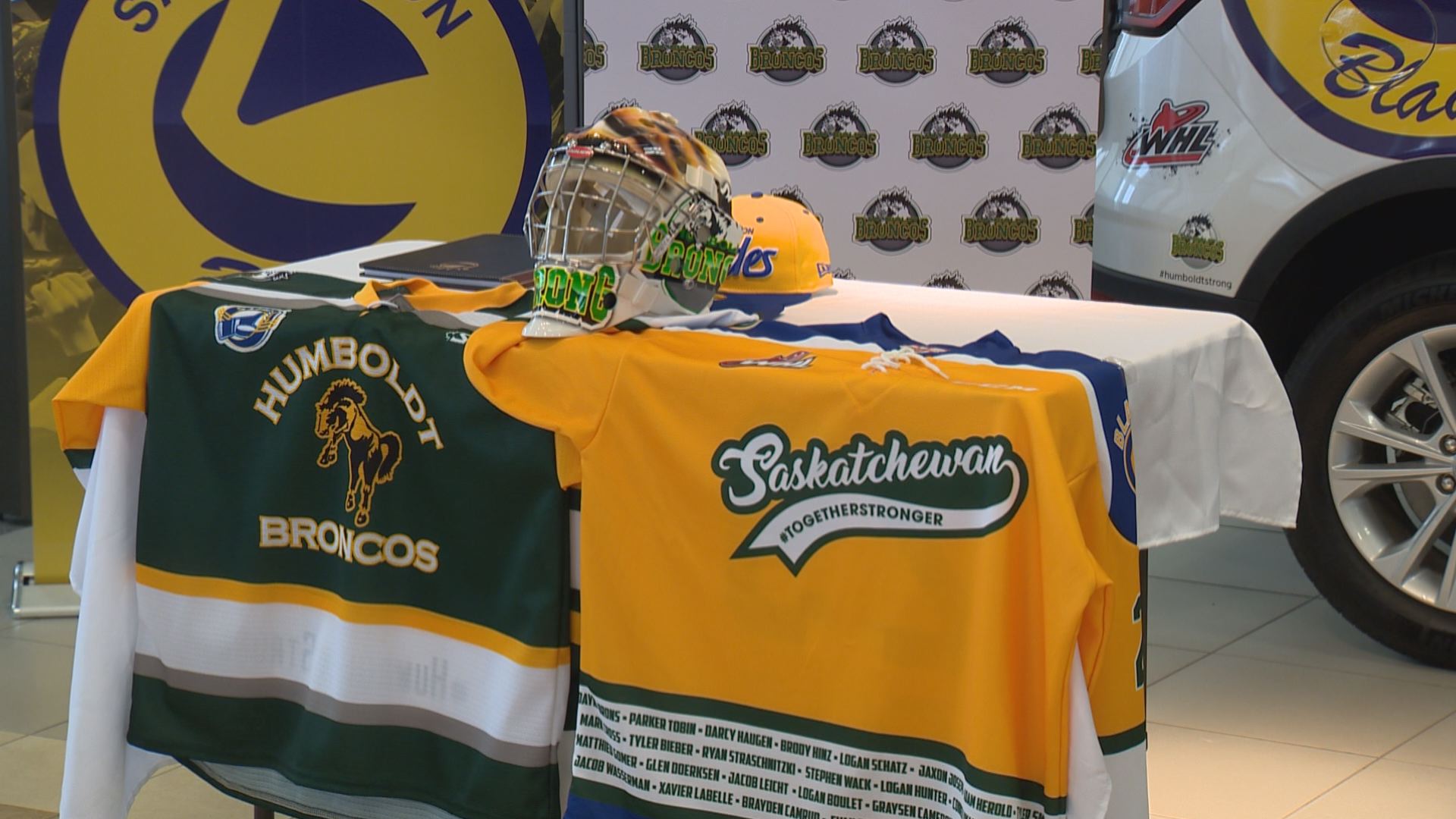 The Blades will be wearing a special “Saskatchewan Together Stronger” jersey, a tribute to the Broncos gold jersey which features the names of the 29 victims of the April 6 bus crash.