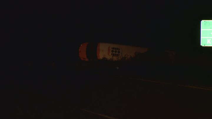 The bus was carrying oil field workers and came to rest on its side in the northbound ditch. The semi-truck, which was hauling two trailers of canola, came to a stop near the center of Highway 31 in the intersection, facing north.