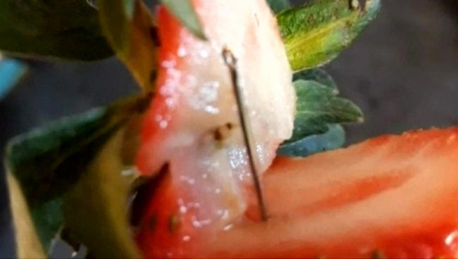 The police have said that six brands of strawberries in Australia are believed to be contaminated with needles and pins, prompting warnings from authorities to slice the fruit before eating.
