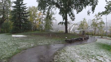 A touch of colour and art filled a section of Edmonton’s river valley on an otherwise cold, wet, snowy day.