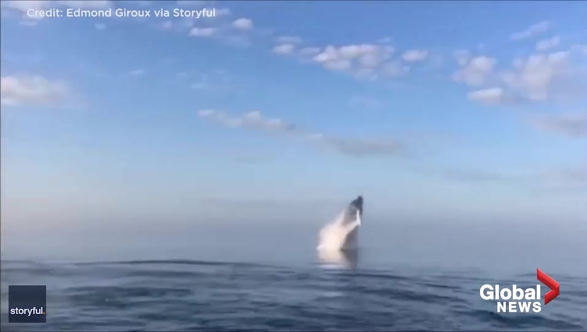 The video, captured on Aug. 17, was taken by Edmond Giroux, a passenger aboard a whale tour by Ocean Explorations Zodiac Whale Cruises off the coast of Nova Scotia.