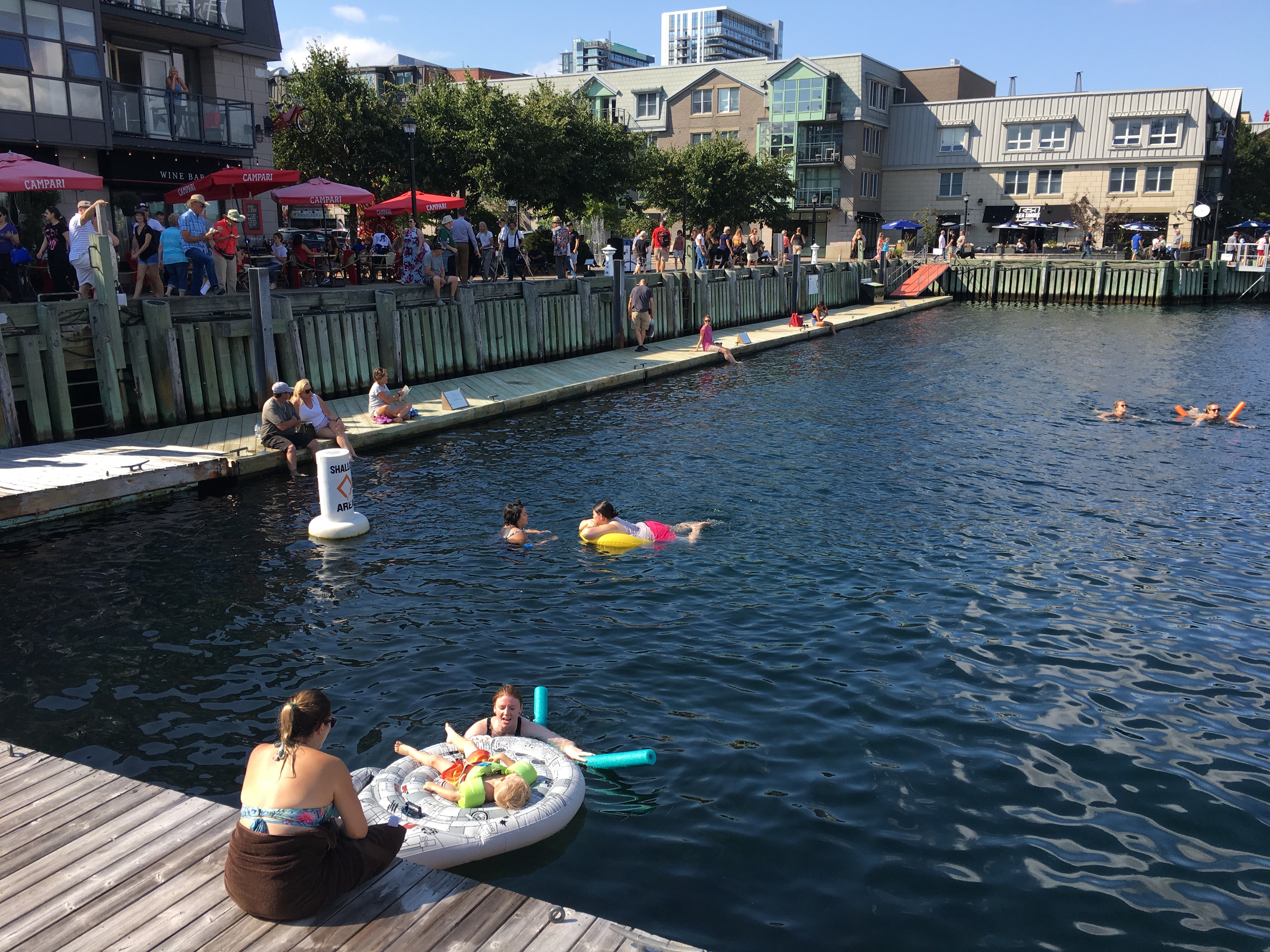 One of the last things you might expect to see while wandering along the Halifax boardwalk is people swimming in the city’s harbour.