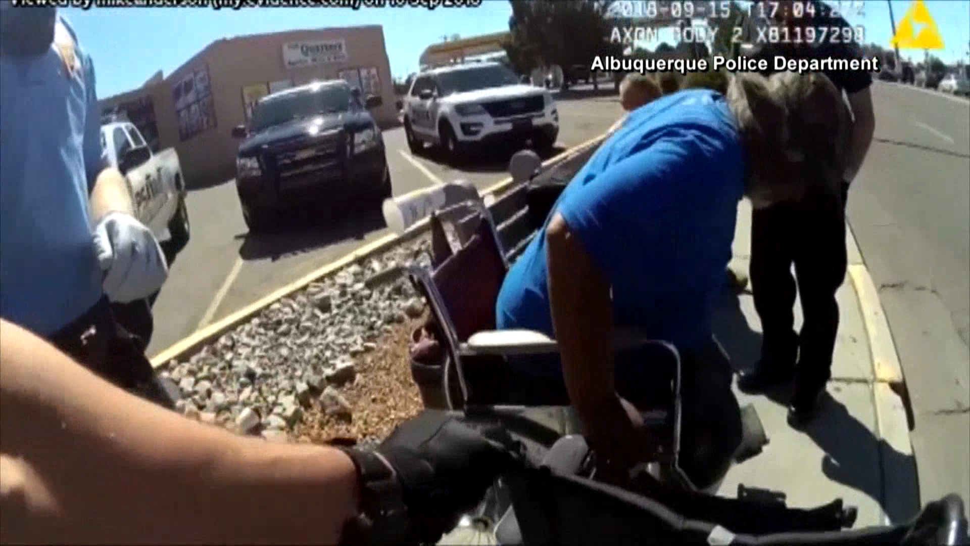 Police in Albuquerque received several concerned phone calls on Saturday after a homeless man was spotted panhandling on a dangerous street median in a wheelchair — and it led to an officer presenting him with a new chair.