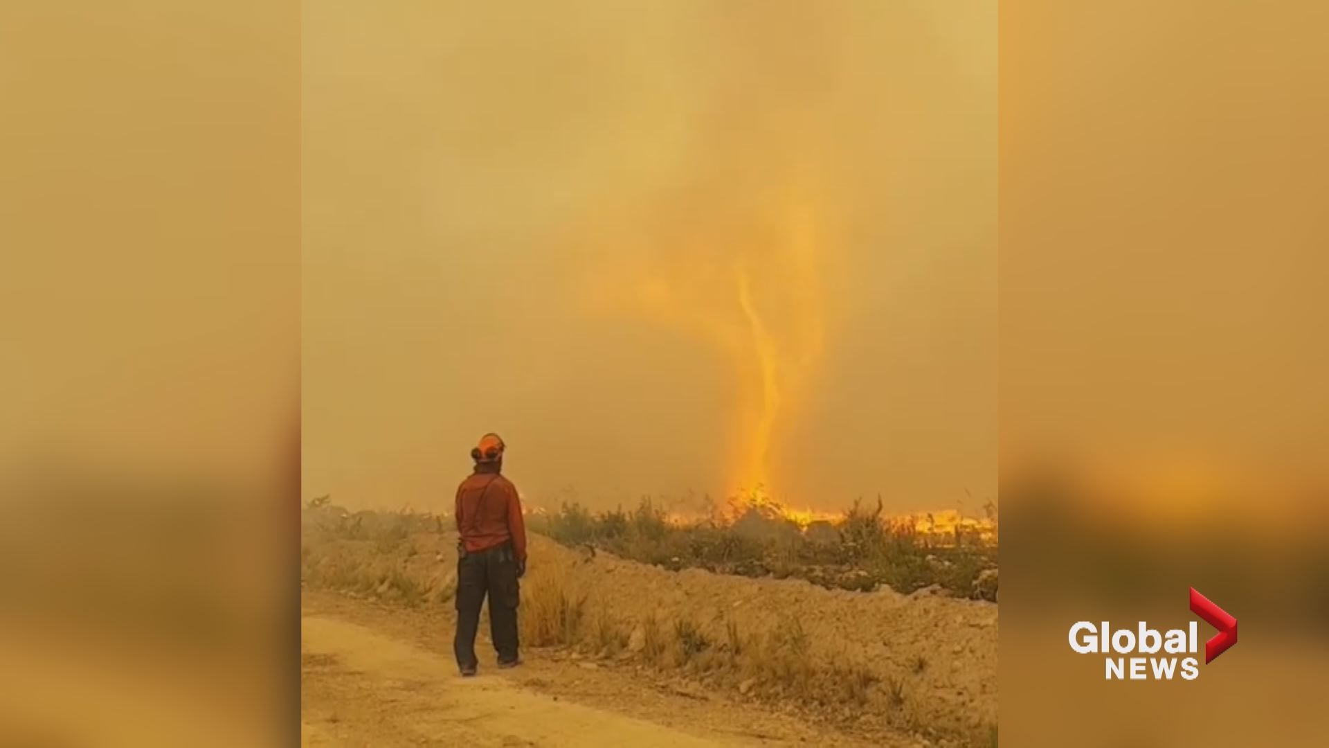 Video captured and posted to social media shows firefighters dealing with a huge blaze near Vanderhoof on Aug. 19, including a fire whirl or fire tornado.