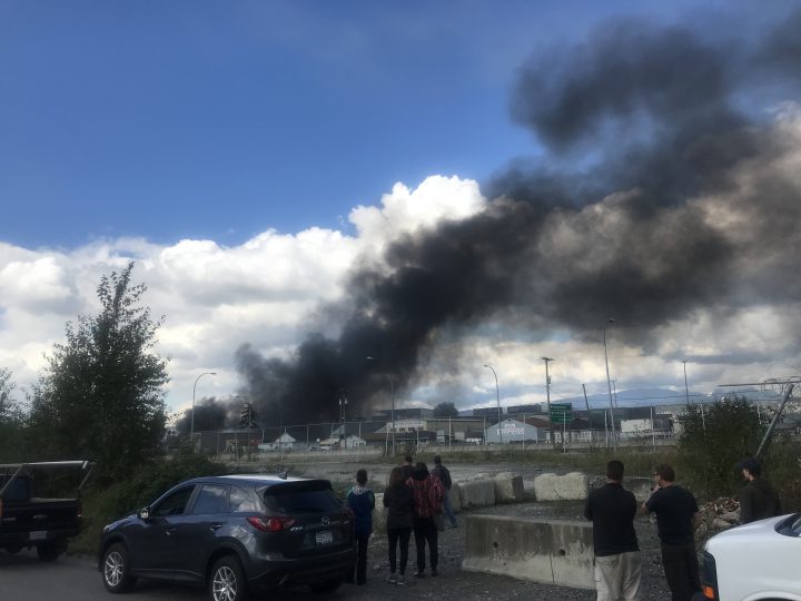 Surrey RCMP said they were assisting fire crews battling a blaze in the area of Pacific Propane Container Recycling Ltd., located in the 13000-block of 116 Avenue.