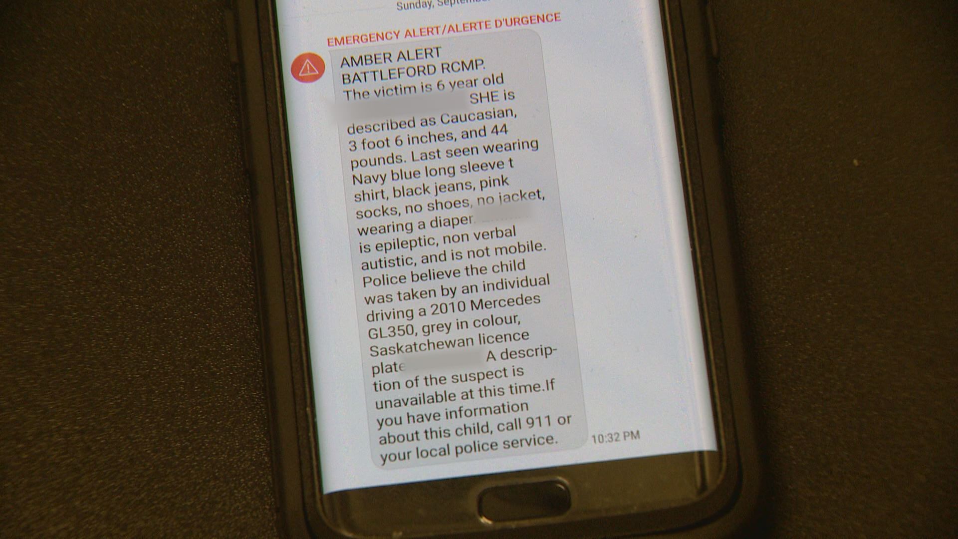 A statement from the province of Saskatchewan said the Amber Alert was issued through wireless technology but it did not go through due to a text related issue with the National Public Alerting System.