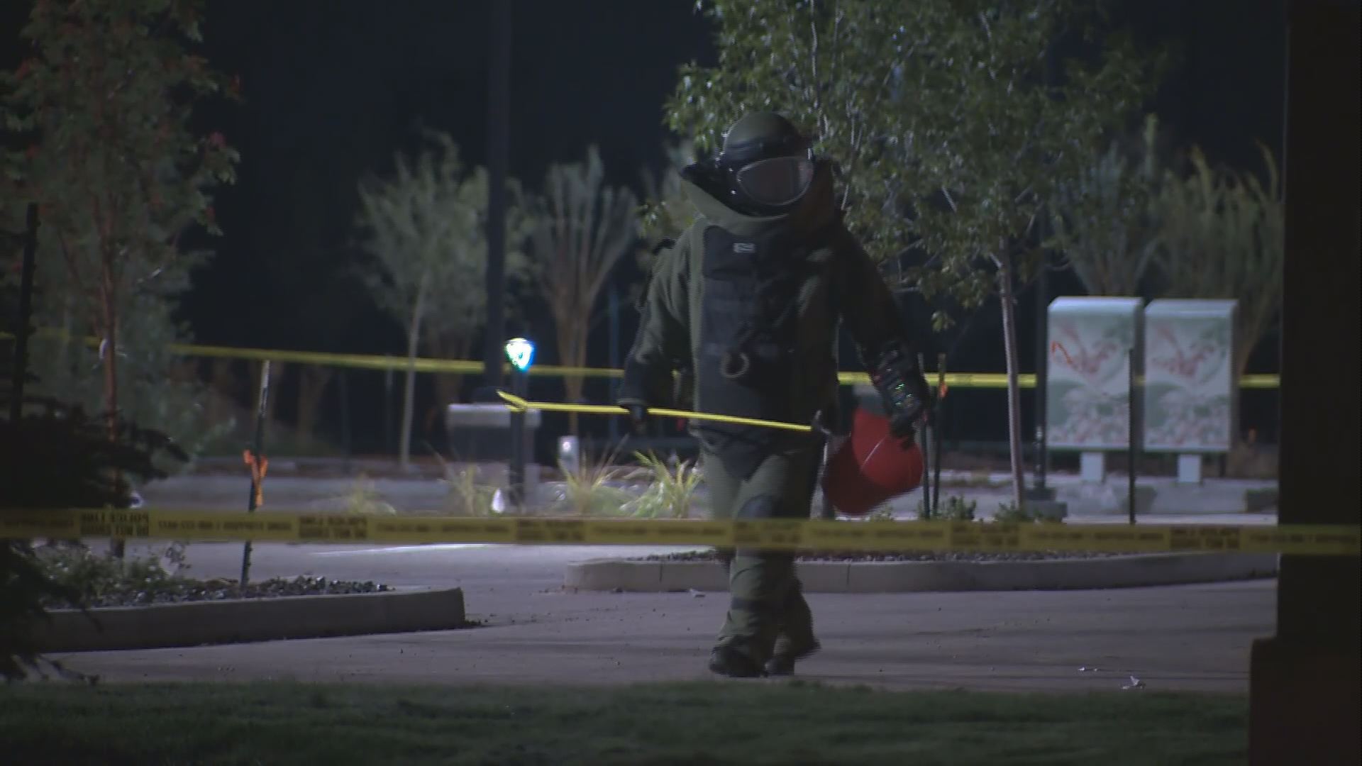 After the explosion, a person in an explosive ordnance disposal (EOD) suit, or a blast suit, could be seen inspecting both in and around the bank. Global News also spotted a bomb disposal robot moving around the parking lot.