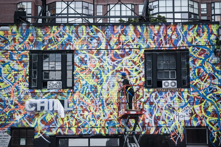Instead of the muted colours and cookie-cutter designs that fill many condo buildings, developer Camrost Felcorp hired Toronto artist Anthony Ricciardi to create seven murals splattered with bright paint and a rainbow of drip marks.