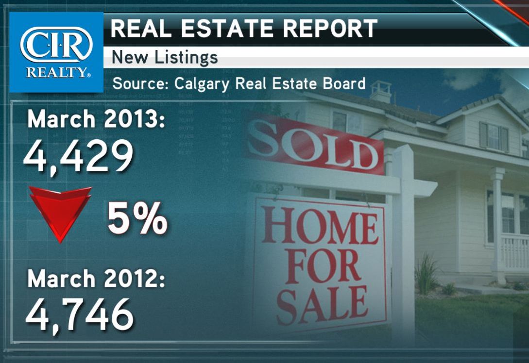 New numbers from the Calgary Real Estate Board show listings in March were five per cent less than the offerings in March 2012, at 4,006 units.