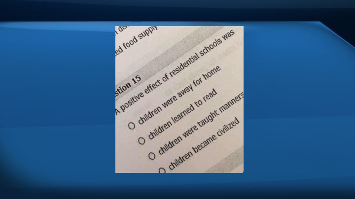 Jody Whiskeyjack, who is from Saddle Lake Cree Nation, uploaded pictures of the test question to Facebook. She said a family member took the photos.