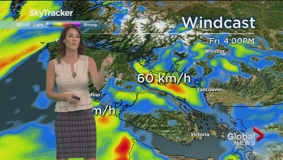 “It’s not an incredibly intense system, but we certainly will feel its impact starting [Thursday night],” said Global BC meteorologist Kristi Gordon.