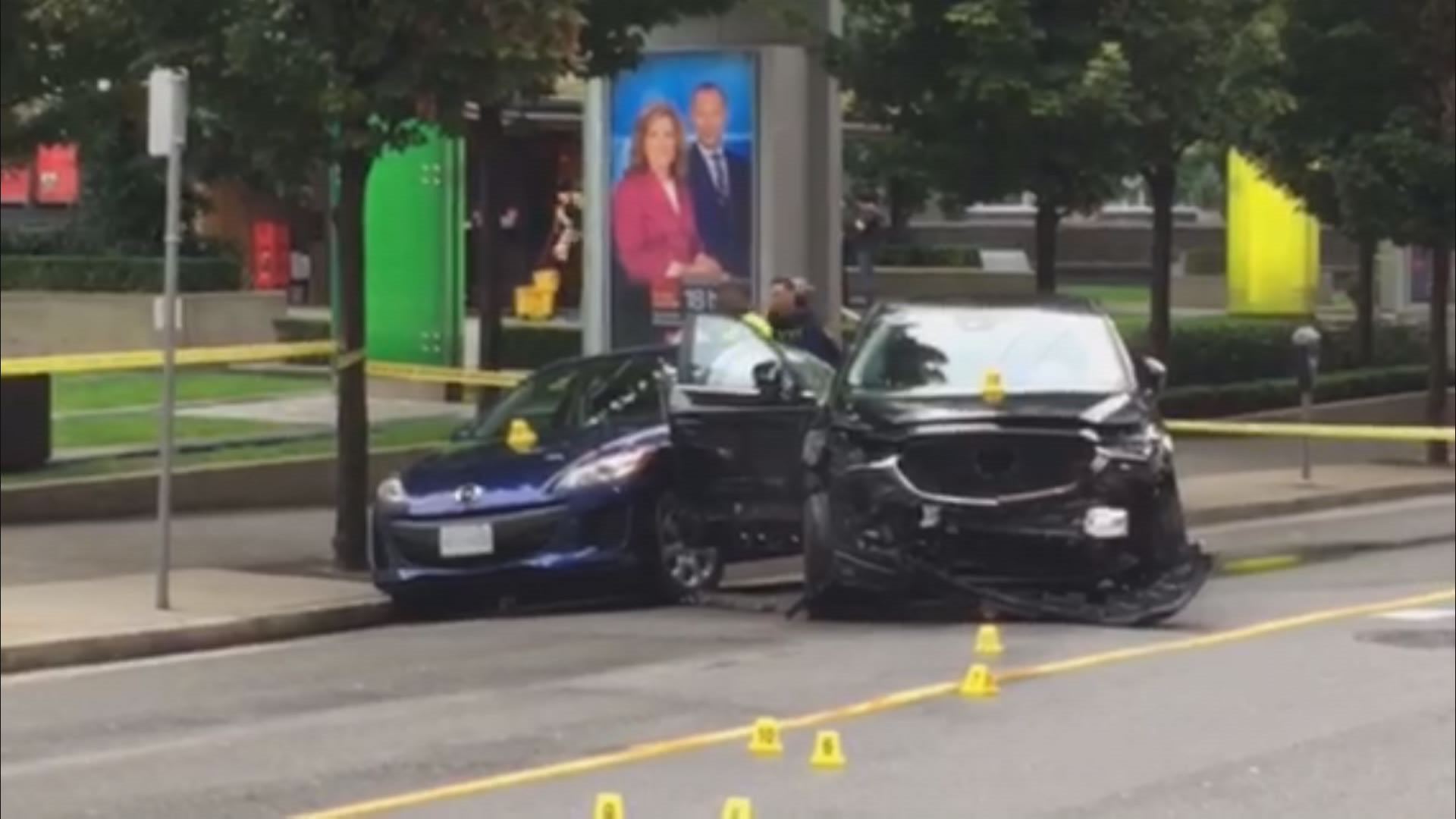 The car was involved in a number of collisions in the area of West Georgia and Hamilton streets, hitting several cars and a pedestrian who suffered serious but non-life-threatening injuries.