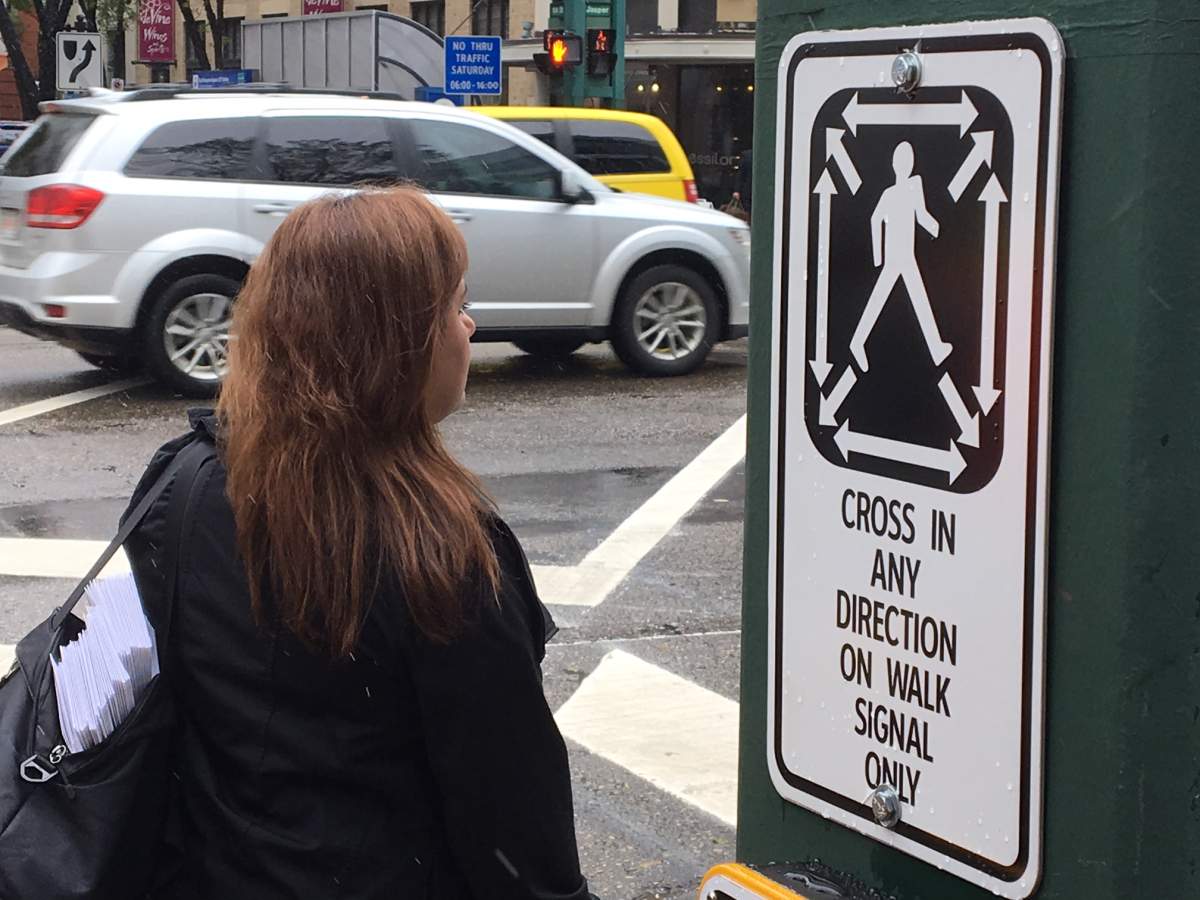 Crosswalks at two Edmonton intersections will operate slightly differently for at least the next year as the city tests out so-called “pedestrian scrambles.”