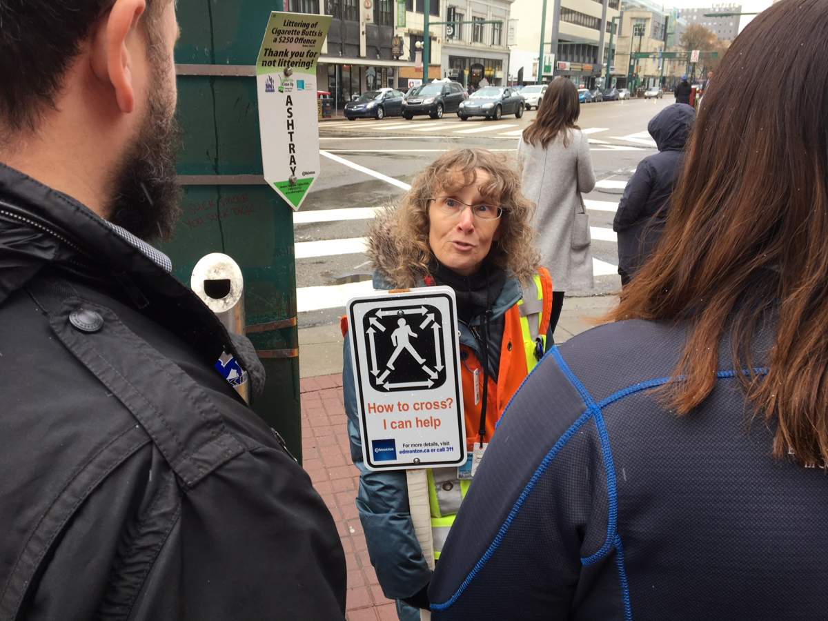 One crosswalk was introduced Friday at Jasper Avenue and 104 Street. Another one will start on Oct. 5 at 82 Avenue and 105 Street.