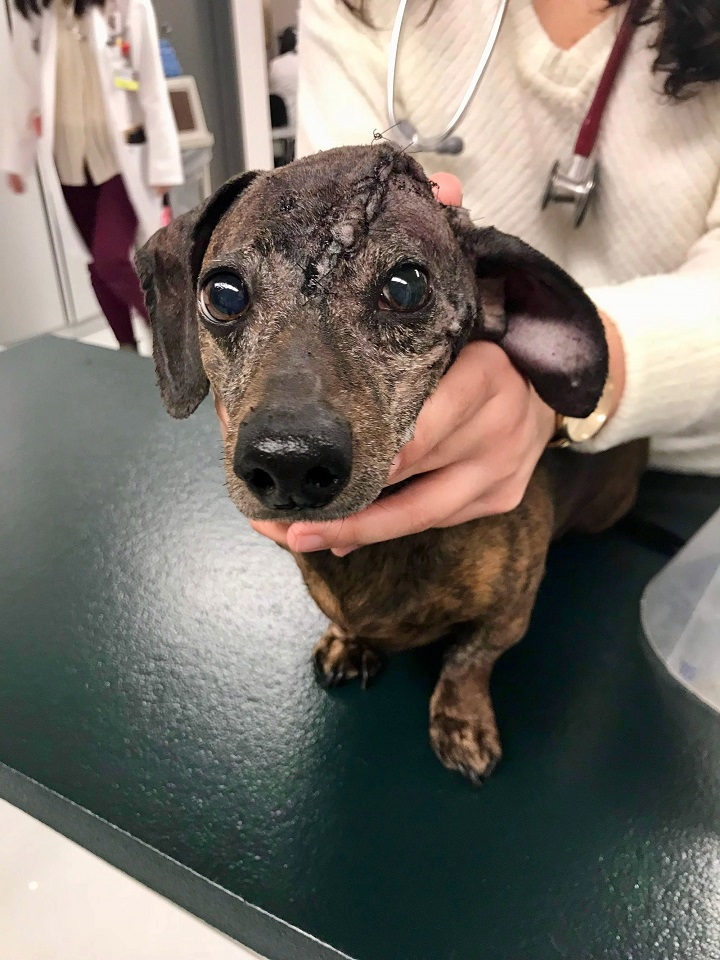 “Her head looks great, other than her crooked ear,” Dymeck said of her pet’s post-operation look.