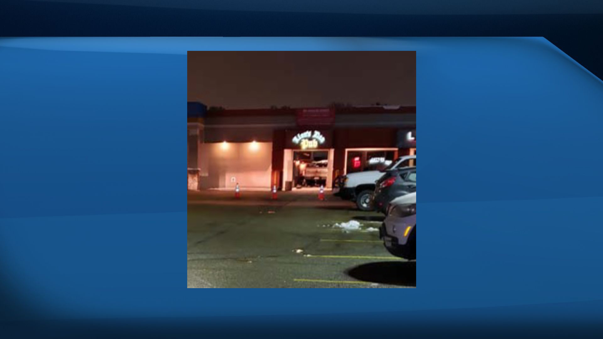 A man is facing impaired driving charges after a truck crashed through the front door of a Red Deer pub on Saturday night.