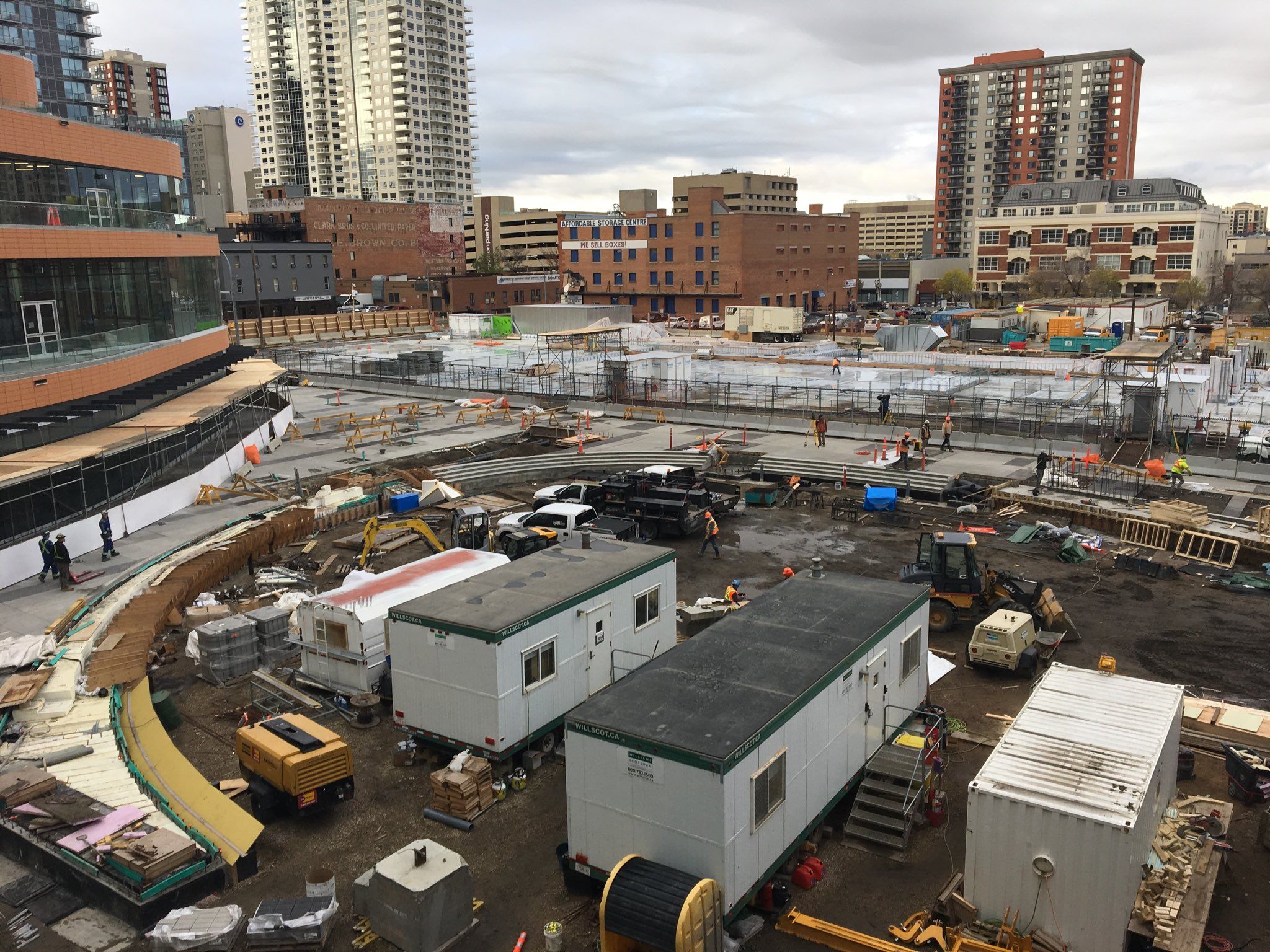 Construction continues on the 50,000-square-foot Ice District Plaza outside of Rogers Place. The vision for this space is to be the “epicentre of energy” within the downtown district.